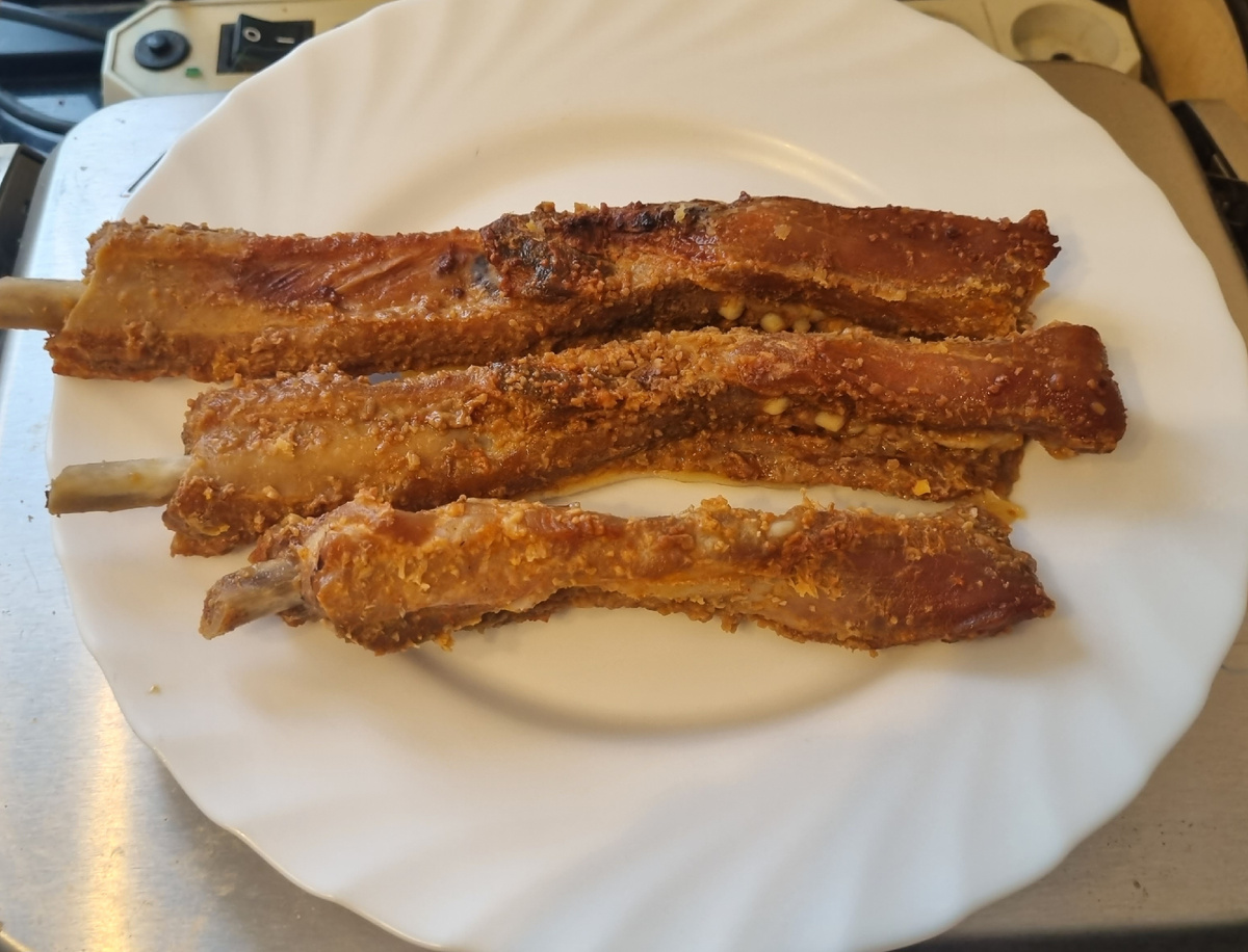 Обычно ребра я покупаю говяжьи и тушу их в скороварке, мне они так больше нравятся. А тут муж захотел запеченных ребрышек и даже купил в магазине, ну типа такой пласт