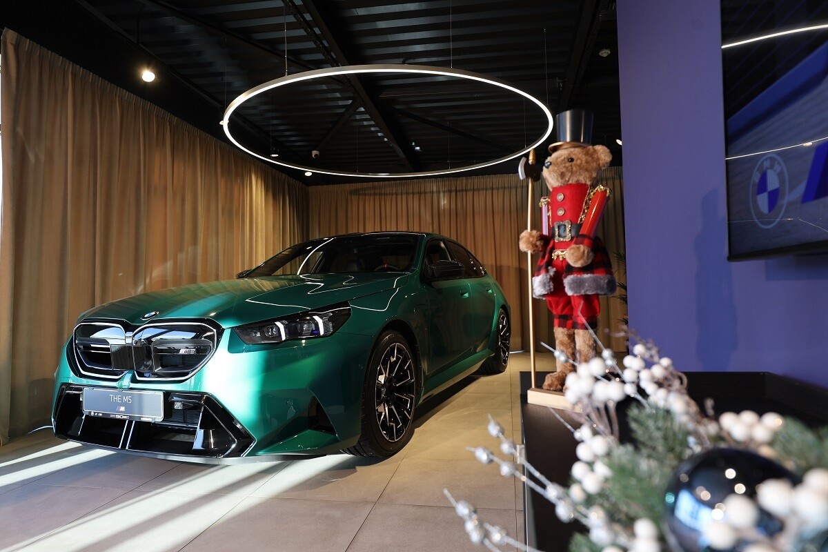 В сентябре белорусский дилер BMW открыл приём заказов на спорткар М5. Сегодня, 12 декабря, в столичном салоне марки состоялась презентация новинки. Как отмечают в автоцентре «АВТОИДЕЯ», по сравнению с «гражданскими» версиями спрос на спортивные автомобили BMW M в Беларуси рекордный. У нас модель представлена в кузовах седан и туринг (универсал). Всего привезли восемь машин, из них пять уже нашли покупателей. Стоимость немаленькая — от 175 000 до 215 000 евро. При этом имеется возможность заказать авто в индивидуальной и неповторимой комплектации. Среди особенностей демонстрационного экземпляра за €193 000 можно выделить опциональный изумрудный цвет кузова, новейшие колёсные диски диаметром R20 спереди и R21 сзади, карбоновые вставки (боковые зеркала, увеличенный липспойлер, крыша). Интересно, что у автомобиля открыт обдув радиатора. Как пояснили в автоцентре, сквозные «ноздри» сделаны для достижения максимального охлаждения двигателя при использовании на треке. Однако по запросу клиент