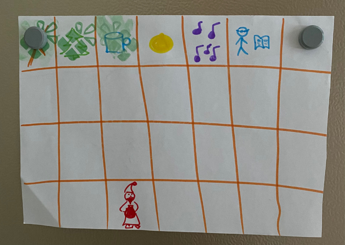 Имела неосторожность завести с дочерью разговор про Деда Мороза и подарки. Она решила что это случится вот прям сегодня и через три минуты (её стандартное измерение времени "ти мину") ждала его прям с мешком и прям в бороде. До этого десяток раз читали про Конни и Новый год и ничего, не нужен был ей такой же. А когда я села писать письмо Деду Морозу и она пришла полюбопытствовать, остановить негодование оказалось непросто. Пришлось быстренько набросать календарь, инфографику наших предновогодних планов и обозначить тот далекий день, когда бородатый дед в красном наконец принесет подарки. Нарисовала первое, что пришло в голову - елку, какао, мандарины, музыку и бабушку с книжкой. Каждый вечер берем печать и "закрываем день" - получите, распишитесь. ▪️Елку нарядили совместными усилиями. Настя настойчиво развешивала по два шарика, видимо чтобы не скучали. Я конечно же нахваливала, а потом конечно же перевесила их хоть сколько-то равномерно (ведь так поступают любящие одновременно и
