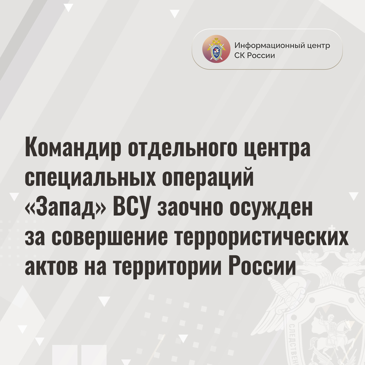 Командир отдельного центра специальных операций «Запад» ВСУ заочно осужден за совершение террористических актов на территории России