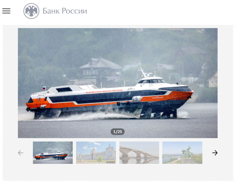 Теплоход на подводных крыльях «Метеор» станет украшением купюры в 1 000 рублей. Такое решение приняли по результатам онлайн-голосования, которое провёл Центробанк РФ. Изображение «Метеора», которое будет размещено на купюре, представляет собой судно «Капитан Полуэктов» — новейший проект «Метеора-120Р», который является усовершенствованным продолжением популярных советских «Метеоров». Теплоходы этого типа производились с 1959 по 2007 год и были очень популярны у населения, рассказывают в АТОР. За теплоход проголосовали более 147 000 россиян. На втором и третьем местах оказались Дворец земледельцев в Казани и Саратовский автомобильный мост через Волгу. Среди вариантов также были памятник Салавату Юлаеву, Вятский художественный музей имени Васнецовых, главный корпус Казанского федерального университета, лермонтовский музей-заповедник «Тарханы», мемориально-архитектурный комплекс «Музей-усадьба П. И. Чайковского», Жигулевская ГЭС на реке Волге и другие достопримечательности страны.