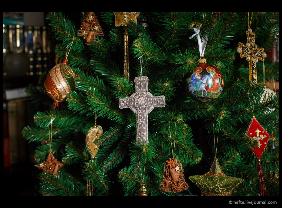 Венчает ёлку не пятиконечная звезда, а ВОСЬМИКОНЕЧНАЯ! Ёлка стоит украшенной всю Рождественскую неделю или большее время но не меньше, чем 7 дней Рождественской недели!