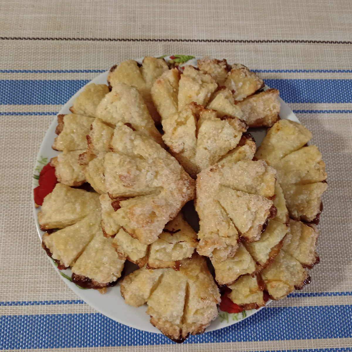 Добрый день! Обнаружила у себя провал в деле приготовления домашнего печенья. Оказалось очень мало, практически нет рецептов в моей старой тетрадке. Покрылась в старых книгах вообще нету, торты да пироги. Где рецепты?! Нет, я чего завелась, то? Я хотела напечь хорошенького вкусненького печеньица, купить какую-нибудь симпатичную баночку с крышкой и бантиком и всем знакомым дарить на праздник. Это же так мило! А у меня печенье выглядит не так как мне представлялось: печеньки все разные получаются , ещё и большие, как чебуреки. Решила всё-таки приготовить по одному своему проверенному рецепту... Печенье очень вкусное, из творога, как раз есть пачка. Рецепт: Масло натираем на терке, яйца смешаем с творогом. Смешивае все с мукой, размешиваем. Тесто напоминает крошки. Из теста лепим шарики - заготовки для будущего печенья. Их надо убрать в холодильник на 1 час. Через час достаём, и начинаем изготавливать наше печенье. Есть особенность в технологии приготовления : из шарика дел