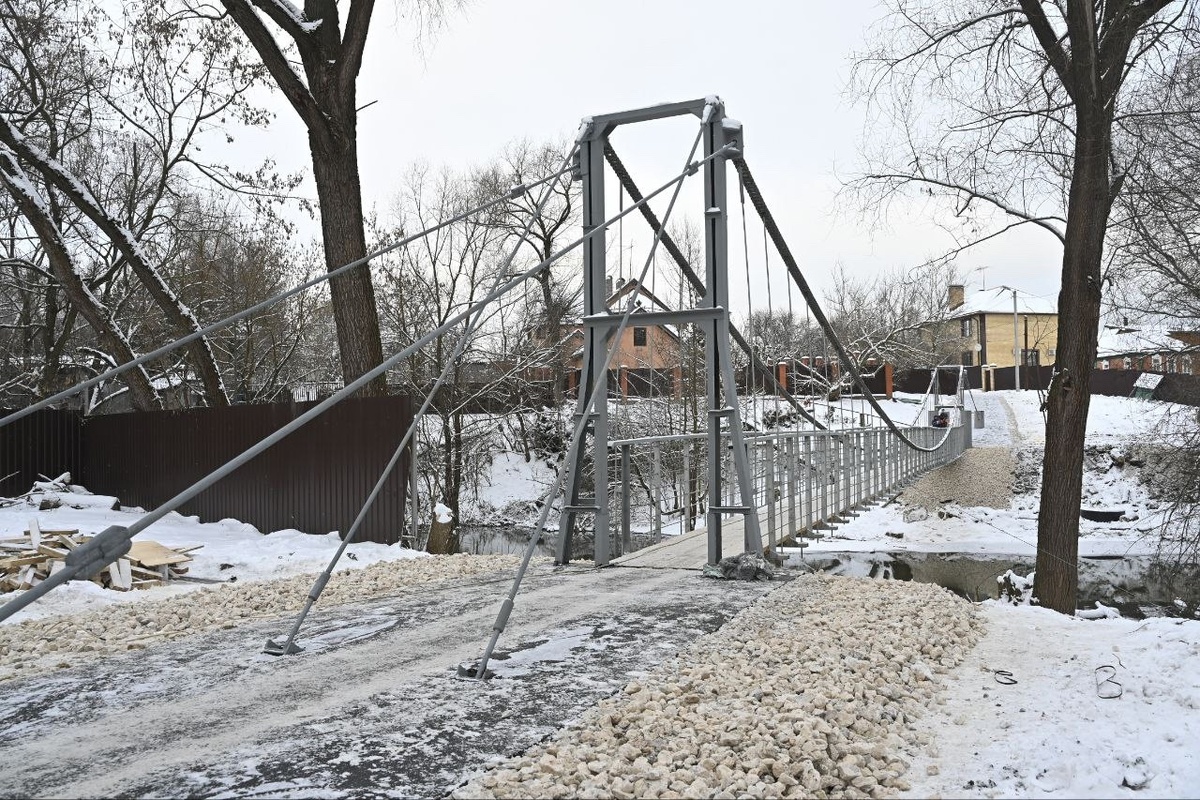Как и было заявлено в проекте проведения работ, выдержки из которого публиковались в том числе в социальных сетях, на правом берегу было проведено укрепление существующего пилона. Конструкция была усилена дополнительными швеллерами и тщательно забетонирована. Результат работ соответствует всем нормам. С жителями, которые обеспокоились качеством проведения ремонта, была проведена встреча на месте, даны необходимые разъяснения. Мост безопасен и готов служить верой и пр