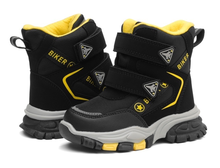 Ни для кого не секрет, что правильный уход продлевает срок службы обуви. В последние годы ботинкам страшна не только влага — песок и реагенты также негативно сказываются на качестве материала, поэтому следует не пропускать регулярный уход. Приучать ребенка ухаживать за обувью можно постепенно, давая нагрузки, посильные для его возраста. Дошкольник вполне может протирать свою обувь самостоятельно. Вернувшись домой, не откладывайте надолго обработку обуви. Пусть ребенок будет не только свидетелем, но и активным участником. При необходимости, предварительно высушите обувь от влаги и очистите ее от загрязнений. Дутые синие сапоги для девочки, арт: D8857540. Дутые желто-черные сапоги для мальчиков, арт: S8857113. Покажите вашему сыну или дочке, где хранятся принадлежности для ухода и поэтапно объясните план действий.