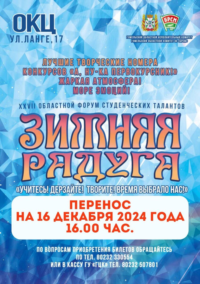 Форум талантов «Зимняя радуга» переносится на 16 декабря