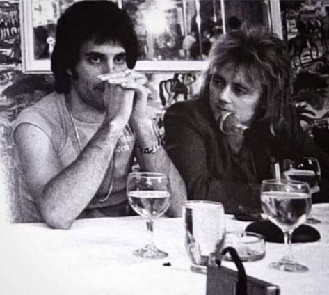 Интересно, что в бокалах на этом фото? Это же либо интервью, либо официальное мероприятие. Напротив Роджера микрофон, тут же впереди диктофон стоит. В бокалах вполне может быть вода. Да, да обычная вода! Может, и не вода. 😉 А что же было в бокалах Фредди Меркьюри на концертах? Дело в том, что Фредди хотел именно воду видеть в бокалах на концертах. Его техник уверенно заявляет, что в бокалах Фредди Меркьюри на концертах всегда была вода. Только обычная, негазированная! Но однажды стекло разбилось, а рядом были зрители. И на одном концерте всё-таки поранился зритель. Тогда появились пластиковые бокалы. Но Фредди показались они совсем не красивыми. И тогда перешли к обычным пластиковым стаканчикам. Так что, на данном фото в бокалах могла быть вода. Фредди Меркьюри мог пожелать налить воду именно в бокалы. Так красиво выглядит со стороны. Вспомнилось, что скоро у нас Новый год! 😀 Надо уже готовиться! Настраиваемся! Появился новый уровень на Премиум-канале здесь же. Смотрите на главн