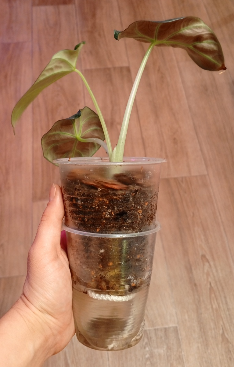 Фитильный полив, один из прекрасных методов для выращивания растений. О его плюсах и минусах и в каких случаях его хорошо использовать я уже рассказывала в предыдущей статье. Для меня такой способ, порой не заменим, он помогает мне укоренить растение, понять сколько воды ему нужно и просто улучшить самочувствие зеленого друга. До этого на "фитиле" я выращивала Алоказии и пока успешно. А теперь хочу на примере других своих растений, показать, как посадить на фитильный полив. Первый мой "пациент" Монстера деликатесная. А зачем ее на фитиль? -спросили бы многие. Но, мой экземпляр абсолютно не хочет расти! Моя Монстера досталась мне вот таким кусочком. Она стояла у меня почти 4 месяца в стакане с водой и эпином. В какой то момент я уже отчаялась и хотела ее выкинуть и тем более со мной уже поделились хорошими черенком Монстерки, который растет прекрасно и радует меня! Но под конец лета, я увидела набухающую почку на этой "кочерыжке", и решила , что потерплю еще. И так еще за 3