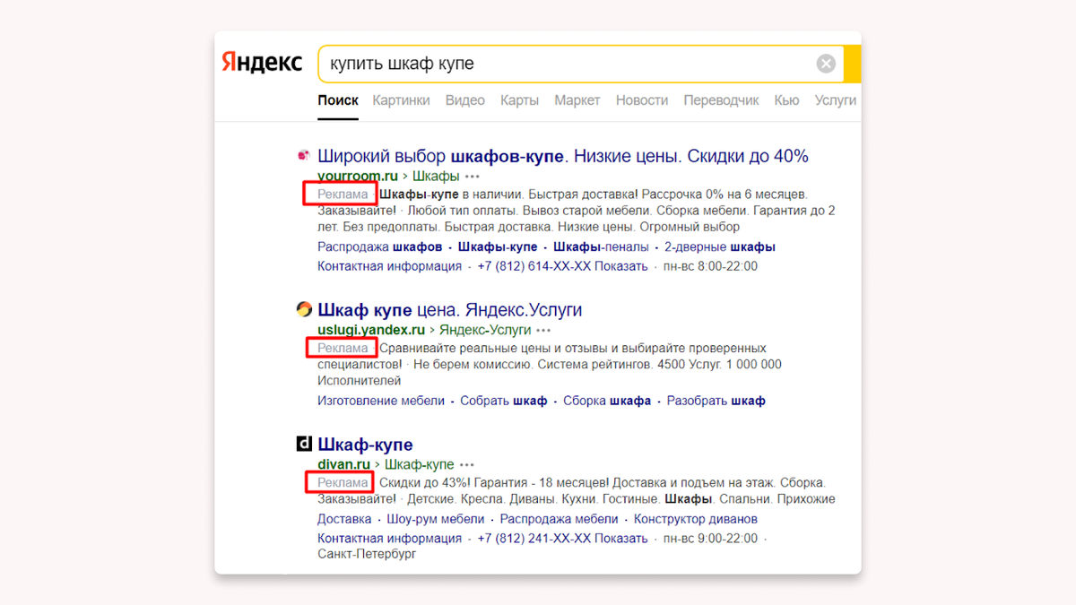 Такой способ продвижения предполагает, что ваши объявления будут показывать по определенным запросам пользователей в поисковой сети Яндекс. Например, если пользователь вводит "купить смартфон", ему могут быть показаны объявления магазинов с продажей смартфонов.