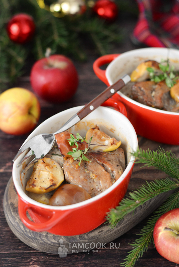 Сочное мясо, тающие яблоки🍎, лёгкий мёдовый аромат смешанный с ароматом трав и чеснока — это простое, но эффектное блюдо! Оно не требует долгих часов на кухне, но при этом выглядит элегантно и по-домашнему. А готовить будем в порционных формочках. Они выглядят мило и так приятно, когда каждому гостю предназначена свою порция😉 С таким блюдом вы точно услышите от гостей: "Ну, ты молодец!". С наступающим вас!🎄 🛒 ЧТО НАМ ПОНАДОБИТСЯ: 👩🍳 КАК ГОТОВИТЬ: 1. Берём свинину и нарезаем её как нравится: ломтиками, кубиками или просто небольшими кусками. Главное, чтобы они были дружелюбны к вашим яблокам — примерно одинакового размера. 2. Яблоки на сцену! Кисло-сладкие – маст-хэв. Никаких зимних "ватных" яблок, только бодренькие! Нарезаем их на четвертинки или шестинки, удаляем сердцевинки и складываем в общую миску к мясу. 3. Добавляем к свинине и яблокам: Поливаем всё растительным маслом и перемешиваем. 4. Берём порционные формочки или одну большую форму. Раскладываем свинину с яблоками. Ес