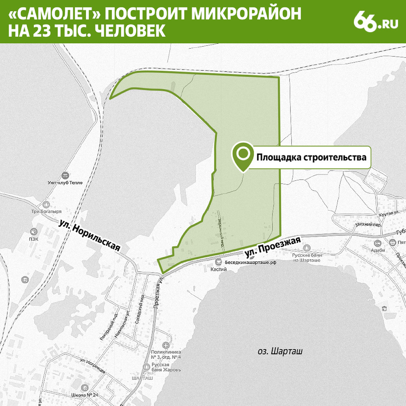 Девелопер просил сменить статус бывших сельскохозяйственных территорий к северу от Шарташа на зону, допускающую строительство многоэтажных домов. «Самолет» рассчитывал возвести там 635 тыс. кв. метров жилья (сопоставимо с объемами застройки Новокольцовского) для 21 тыс. человек, два образовательных комбината, поликлинику, спорткомплекс, а также многоуровневые паркинги. Больше 800 человек во время общественных обсуждений выразили опасения, заявив, что застройка негативно скажется на экологии прибрежной зоны и экосистеме озера. В протоколе и. о. начальника Департамента архитектуры, градостроительства и регулирования земельных отношений администрации Андрей Чернышов согласился с этими замечаниями. Теперь комиссия подведет итоги общественных обсуждений и вынесет решение, которое станет основой постановления за подписью мэра Екатеринбурга Алексея Орлова. Источник 66.RU, знакомый с ситуацией, рассказал, что большинство участников склоняется к тому, чтобы отклонить проект, так как есть множес