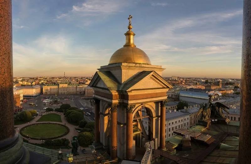 Это одна из самых знаковых смотровых Санкт-Петербурга, визитная карточка города. Хоть и не на первом месте по своей высоте, находится на высоте сорока трех метров, но преимуществом колоннады Исаакиевского собора является его расположение в самом центре города и обзор на все 4-е стороны света. Виды Петербурга с высоты птичьего полёта необыкновенные. Единственное, нужно обязательно рассчитать свои силы, ведь на подъеме вас ждет 262 ступеньки, по ощущениям это как подняться на 28-ой этаж. Правда такой подъем оправдывает ожидания, сверху открывается обзор на все важные достопримечательности города, Дворцовая площадь, шпиль Петропавловской крепости и Адмиралтейство, Казанский собор, Спас-на-крови, Ростральные колонны и даже Смольный собор. Работает смотровая каждый день с 10:00 до 18:00 💰Стоимость посещения 300-500 руб (зависит от времени посещения смотровой) Высота смотровой площадки 50 м, на неё ведут 278 ступеней. Площадка открытая, незастеклённая. По всему периметру установлены ре