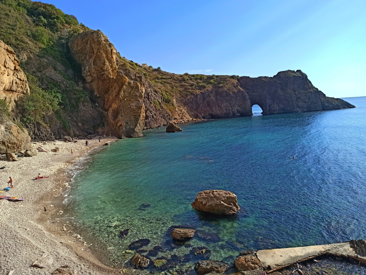 Так комфортно! Температура воздуха в тот день была +18 в тени, а на солнце наверное под +25! Не знаю сколько градусов была вода в море, но оно точно было теплее, чем в конце июня, когда заходя в море, надо было сначала окунуться, потом притерпеться и только потом привыкнув к воде можно было плавать. Мы раньше часто ездили на море именно в 20 числах июня! Подешевле, да и народу поменьше! А тут ласковое тёплое море, кристально чистое, прозрачное, в окружении живописных скал и людей почти нет!