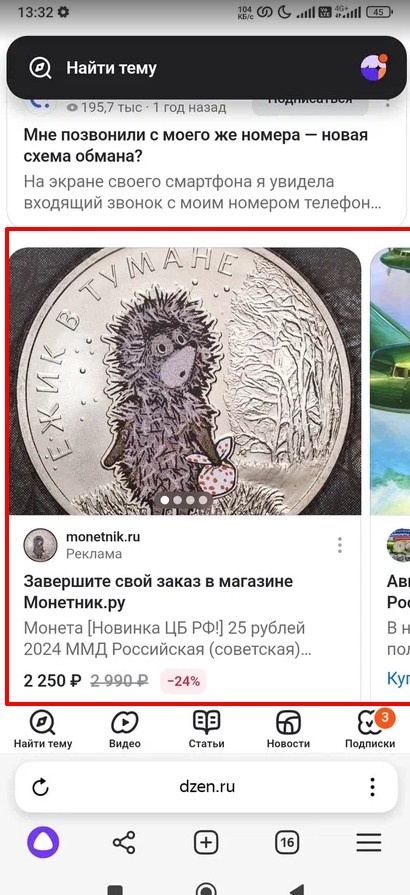 Это скриншот с телефона, а красным квадратом я выделил рекламный блок: