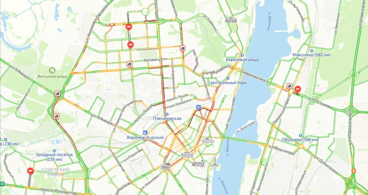 6-балльные пробки снова сковали движение в Воронеже в вечер четверга