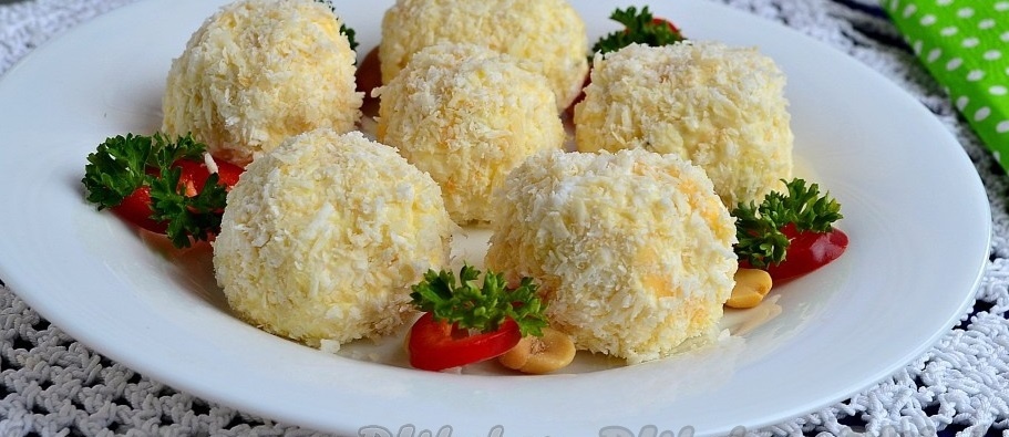 Простой и многими любимый салат Лакомка, все знают как его готовить, а вот как его празднично подать каждый раз все ломают голову. И как только хозяйки не изощряются. В нашей семье все любят этот салат, но одинаковая подача быстро надоедает. А если его приготовить и совсем необычно сервировать, так можно и на праздничный стол ставить! Короче погнали! Рецепт супер прост, нам нужны: Плавленый сыр - 2 шт. Куриное яйцо - 2 шт. Чеснок - 2 зубчика Майонез - 1-1,5 ст.л. Соль - по вкусу Чёрный молотый перец - по вкусу Яйца варим, трем на терке, плавленые сырки трем на терке, измельчаем чеснок и замешиваем все с майонезом, солью и перцем. Вуаля! Салат готов! Кстати недавно узнала, что его еще называют Салат Еврейский, а может есть и другие названия, если знаете пишите в комментарии Ну а теперь самое интересное как его сервировать? Катаем в шарики, в середину шарика можно добавить оливку или соленый огурчик заворачиваем в тонкую нарезку ветчины рулетом Заворачиваем в лаваш рулетом и режем на не