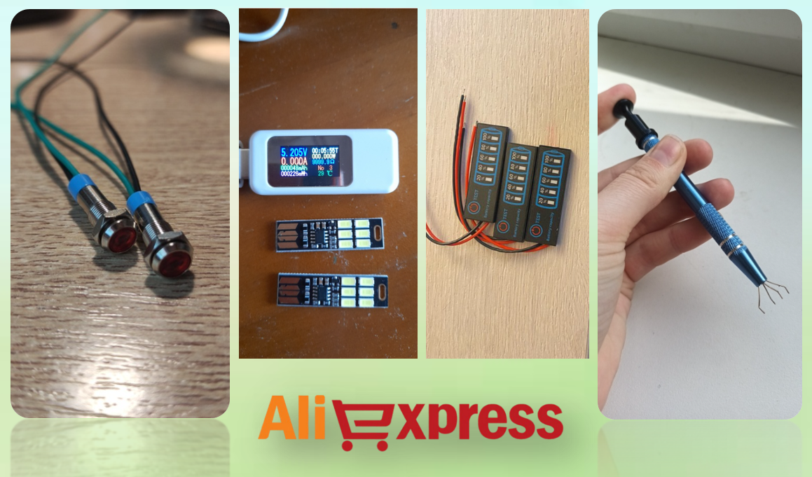 Ищете доступные инструменты для домашних проектов? В этой подборке мы собрали практичные устройства и приспособления с AliExpress, которые помогут справиться с широким спектром задач. 1. Светодиодный индикатор для четкой визуализации Этот светодиодный индикатор создан для надежной работы в сложных условиях. Корпус из металла с защитой IP67 делает его устойчивым к влаге и пыли. Устройство обеспечивает яркую сигнализацию благодаря насыщенным цветам (красный, зеленый, желтый, белый, синий), которые хорошо заметны даже при ярком свете. С возможностью выбора рабочего напряжения (от 3 В до 220 В) и диаметра (6 мм, 8 мм, 10 мм, 12 мм), этот индикатор станет идеальным решением для электрощитков и приборных панелей. 2. Насадки-иглы для точных измерений Эти универсальные насадки незаменимы для работы с мультиметрами. Они позволяют легко добраться до труднодоступных мест или точно измерить параметры на контактных площадках. Тонкие иглы из прочных материалов аккуратно прокалывают изоляцию, не повр