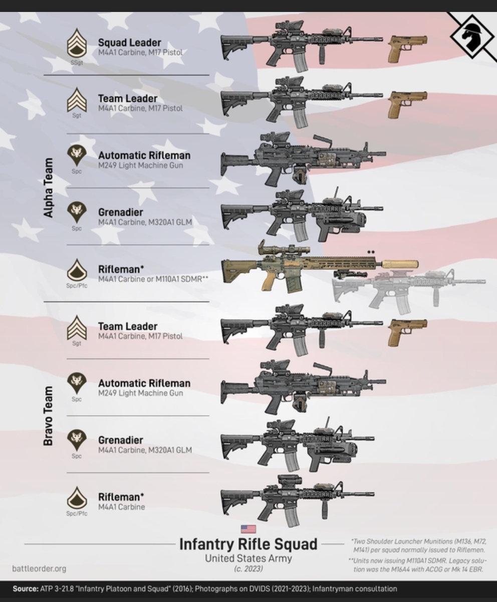 И, конечно, это номинальные случаи; на практике точное количество и оснащение могут отличаться. Российский отряд ВДВ еще меньше из-за ограниченной вместимости их БМД, но в целом имеет схожие очертания.