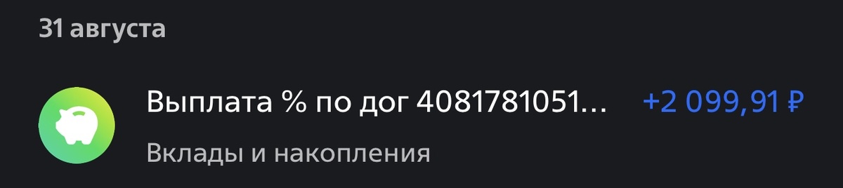 Моя первая выплата с вклада, я оставил средства и на следующий месяц и соотвественно получил выплату также за сентябрь: