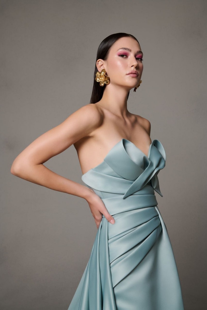 В мире моды есть молодые дизайнеры, которые создают настоящие шедевры. Одним из таких талантливых мастеров является ливанский дизайнер В 2015 году она основала свой бренд Nour Fathallah, который стал известен своей элегантностью и доступностью. Нур Фатхаллах сочетает в своих работах простоту и яркие цвета, создавая уникальные образы. Бренд Nour Fathallah предлагает роскошные вечерние платья по доступным ценам. Они придутся по вкусу женщинам, которые стремятся к изысканному и смелому стилю. В этой статье мы расскажем о 15 роскошных платьях из коллекции осень-зима 2024/2025 от Nour Fathallah. Эти платья покорят ваши сердца и станут источником вдохновения. Первое, что бросается в глаза — это изумительная палитра цветов коллекции, включающая как классические чёрные, так и яркие зелёные, голубые, коричневые и бордовые оттенки. Но особо хочется выделить два ярких платья коллекции. Одно из них персиковое платье-русалка с открытыми плечами, элегантный силуэт которого, выгодно подчёркивает фи