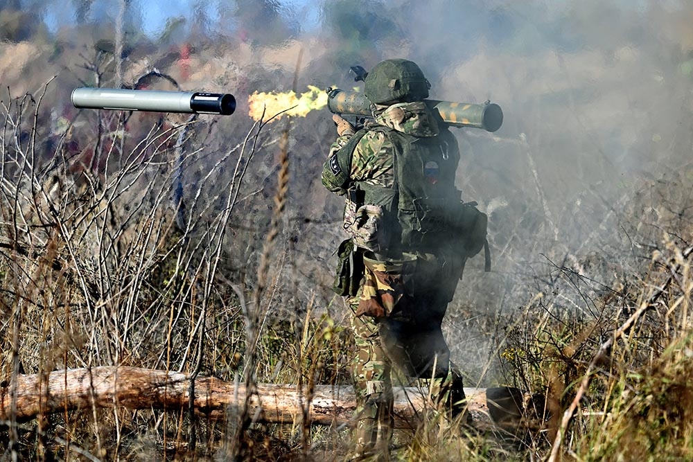 Российский солдат добрался до сооружения, используя автомат и огнемёт семейства «Шмель». Последний отлично подходит для выкуривания живой силы из закрытых помещений или укреплений. В случае отказа обороняющихся сдаться использование термобарического выстрела буквально делает кислород союзником наступающего, выжигая посредством химической реакции всё внутреннее пространство.