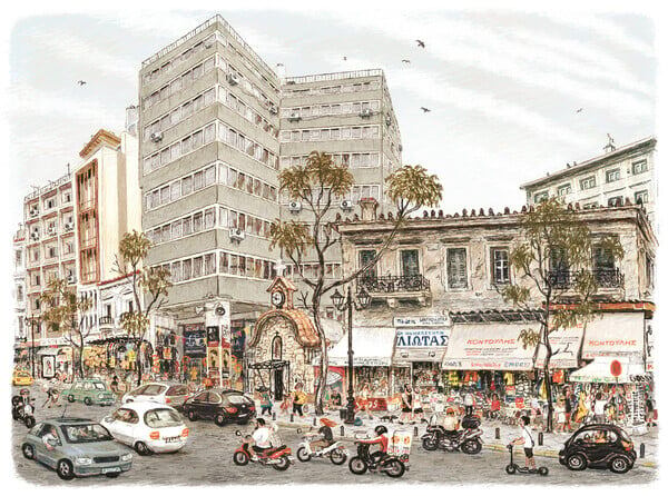 Страсть рисовать именно улицы появилась у меня, думаю, в детстве. Когда я был маленьким, мы однажды приезжали в Афины, и на меня произвела большое впечатление узкая улочка недалеко от места, где мы тогда остановились: ее атмосфера, тот факт, что на ней тусили люди даже ночью, играли дети, общались пожилые люди, сидя на скамейках, свободно бегали собаки, кошки... ".