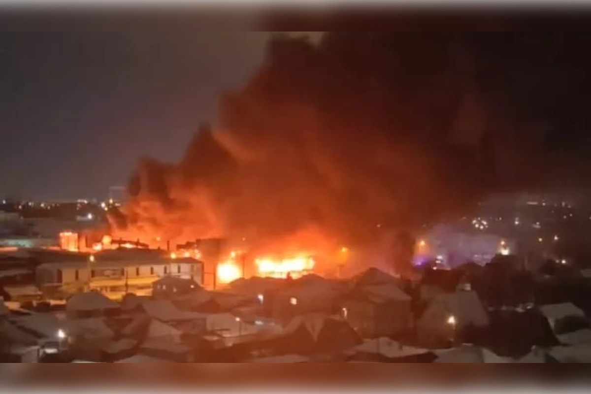 Пока сведений о пострадавших нет. Однако эти данные еще не являются окончательными. В Кировской районе Новосибирска экстренные службы пытаются справиться с пожаром, охватившим порядка 5000 квадратных метров на одном из местных складов. Для спасательных операций задействованы 30 единиц техники и 98 специалистов МЧС. Изначально пожар распространился на площади в 3000 квадратных метров, однако спасатели заявили, что ситуацию усложнили сильные ветра - огонь поднялся выше и охватил еще больше территории. «В Новосибирске огнеборцы МЧС России тушат склад. На Тюменской улице горит здание. Сильный ветер способствует быстрому распространению огня», - приводятся слова местного МЧС журналистами информагентства ТАСС. Точная информация о пострадавших пока отсутствует. Данные обновляются. ________________ Подпишитесь на наш канал, ставьте лайки и пишите свои комментарии, этим вы поможете донести важную информацию до большего количества людей.