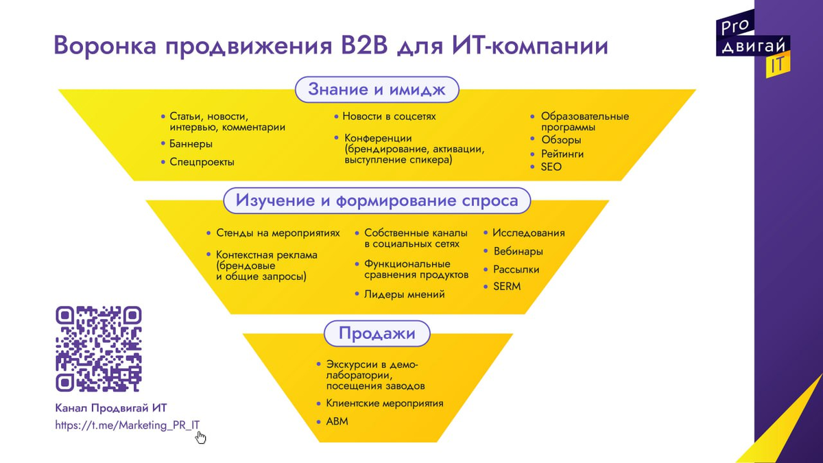 Воронка продвижения ИТ-компании. Этапы и каналы. Инфографика