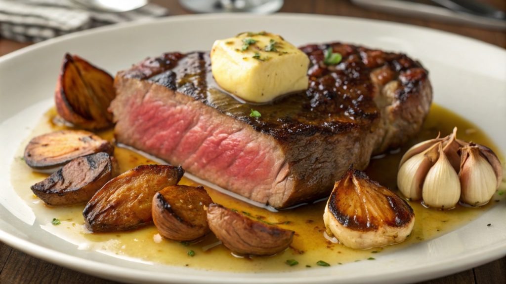 Говяжий стейк — это классическое блюдо, популярное во многих кухнях мира. Приготовленный с маслом и чесноком, стейк приобретает особый аромат и нежность. Это идеальный вариант для ужина в компании друзей или романтического вечера.