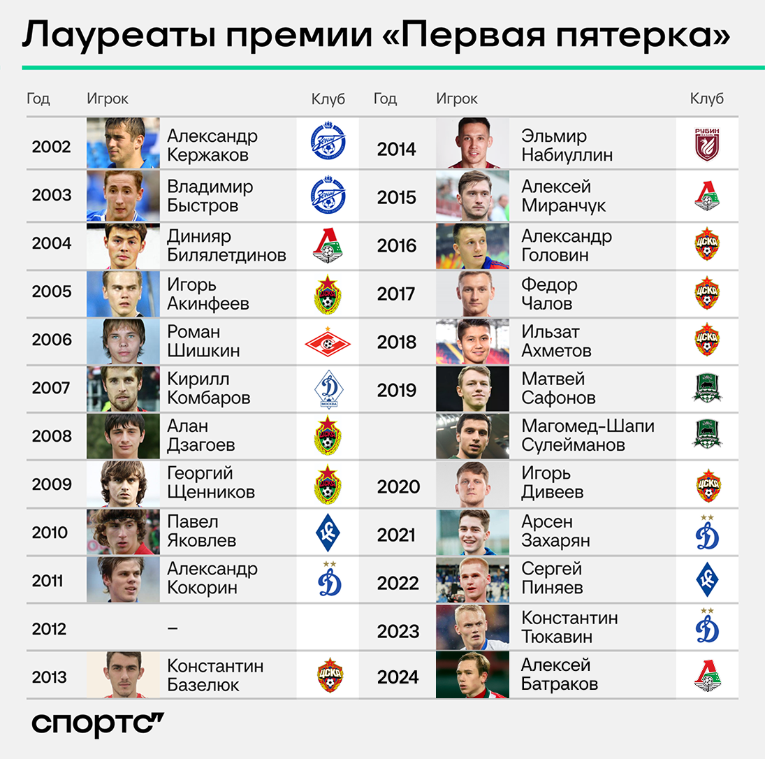 Батраков теперь среди элитных звезд: Кержаков, Акинфеев и Головин тоже получали такую премию.