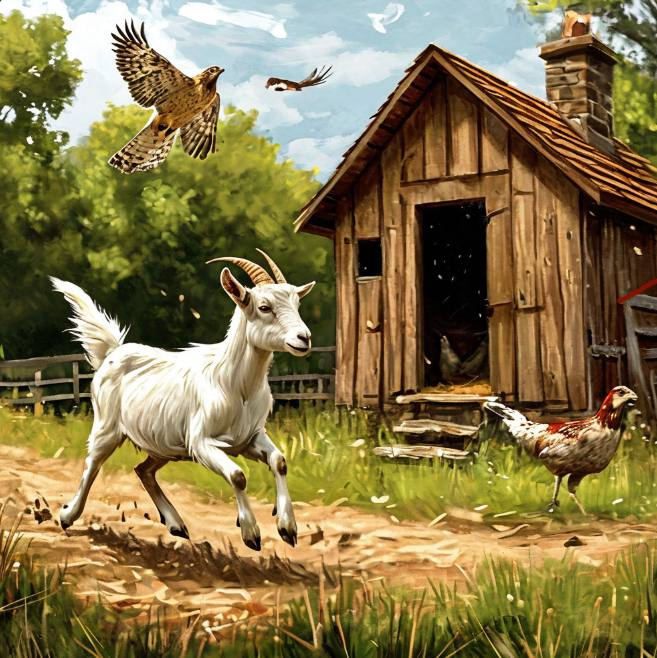 Особенно выделялись три друга: важный петух Гром с переливающимся красным гребешком, добродушная коза Марта с озорными глазами и маленькая пёстрая курочка Пеструшка.