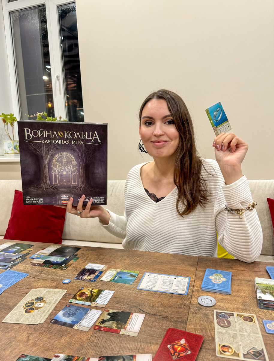 Ребятам, игравшим за добро, в итоге игра, как я поняла, не особо зашла (хоть они и победили) — слишком много тут ситуативных связок, запоминание которых на первых этапах напрягает и немного фрустрирует, поэтому, как по мне, карточная «Война кольца» всё-таки коробка для человека, у которого есть постоянна ячейка для подобной игры.