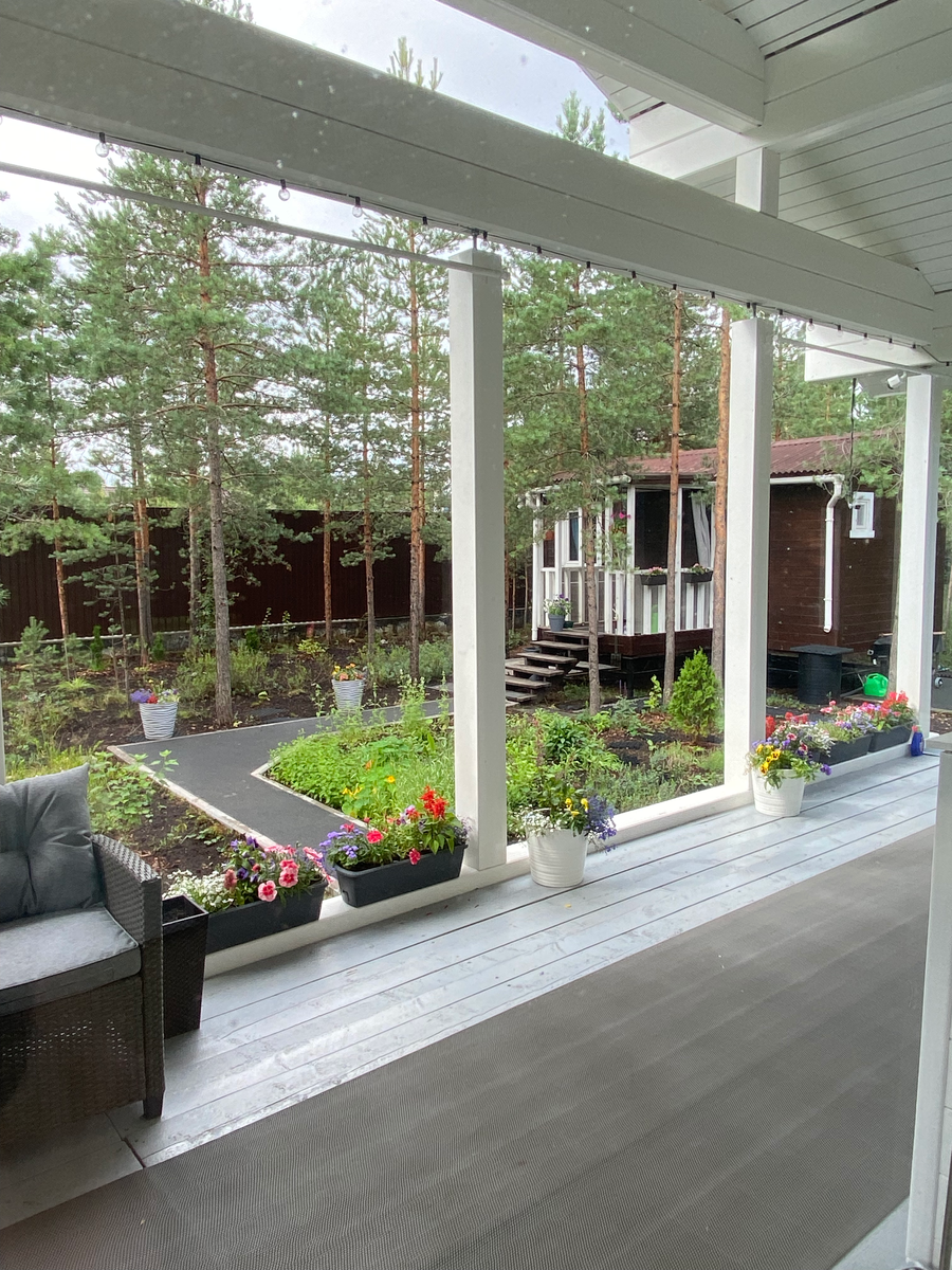 Эх, хорошо, что у нас на террасе нет ограждения! В сотый раз радуюсь, как же удобно многие работы делать! Вот и сейчас: подошла к краешку, разложила всё, что надо, и занимайся творчеством!