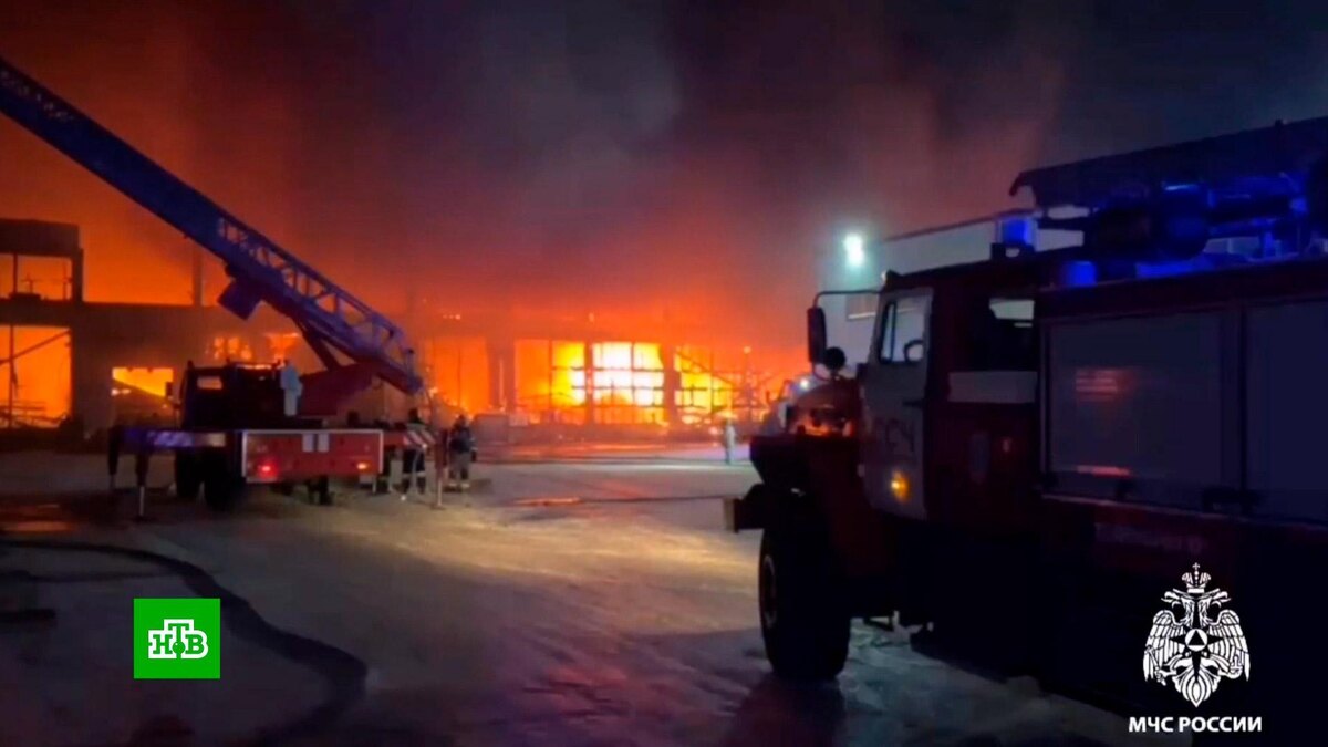 [ Смотреть видео на сайте НТВ ] В Новосибирске сотрудники МЧС продолжают ликвидировать крупный пожар. Площадь пожара достигла пяти тысяч квадратных метров. Яркое зарево было видно практически из любой точки города. В горящем здании частично обрушилась кровля. На месте работают более 100 пожарных и 38 единиц техники. Распространению огня способствует сильный ветер. Как сообщили в МЧС, возгорание удалось локализовать. Для проведения замеров предельно допустимой концентрации вредных веществ в воздухе направлены специалисты. На месте возгорания работают экипажи полиции. [ Смотреть видео на сайте НТВ ]