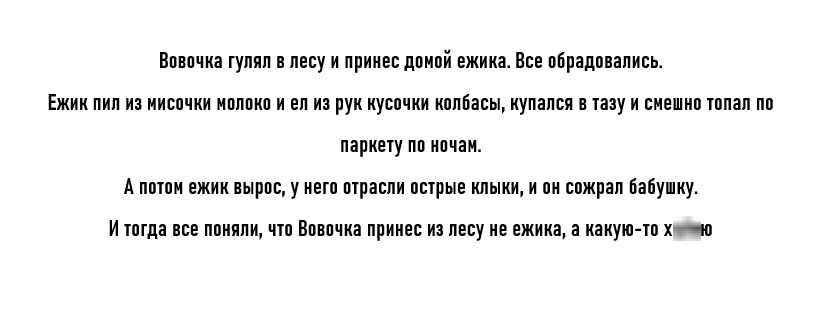 Ждешь, что оно всю жизнь будет милым ежиком, а уже через 10 лет оно вырастает с самосвал - невольно начинаешь прятать бабушку...