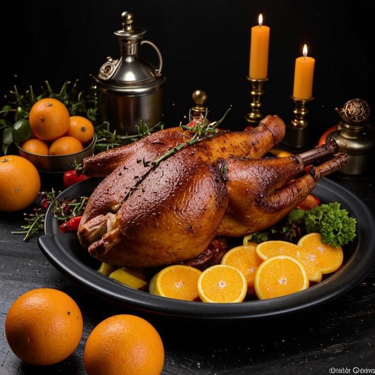 Ингредиенты: 1. Утка – 1 шт. (около 2 кг) 2. Апельсины – 3 шт. 3. Мед – 2 ст.л. 4. Соевый соус – 2 ст.л. 5. Оливковое масло – 2 ст.л. 6. Чеснок – 2 зубчика 7. Розмарин – 2 веточки 8. Тимьян – 2 веточки 9. Соль, перец – по вкусу Утка с апельсинами — это классическое французское блюдо, которое стало популярным в СССР благодаря своей изысканности и необычному сочетанию вкусов. Это блюдо символизирует богатство и благополучие, поэтому оно идеально подходит для новогоднего стола. Как приготовить: 1. Промойте утку и обсушите бумажными полотенцами. 2. Натираем утку солью и перцем изнутри и снаружи. 3. Один апельсин нарезаем кружочками и кладём внутрь утки вместе с розмарином и тимьяном. 4. Оставшиеся апельсины нарезаем дольками и выкладываем вокруг утки в форме для запекания. 5. Смешиваем мёд, соевый соус, оливковое масло и измельчённый чеснок. Получившимся маринадом смазываем утку. 6. Накрываем форму фольгой и отправляем в предварительно разогретую до 180°C духовку на 1,5 часа. 7. Че