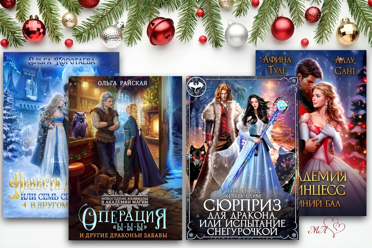 Всем доброго дня) Скоро Новый год🎄(да, я капитан очевидность)! Надеюсь, у вас уже праздничное настроение. А если нет, то в этом вам могут помочь книги, которые я для вас нашла😉. Составляя данную подборку, я ориентировалась на описание, комментарии и рекомендации. Поэтому, если я вдруг промахнулась, сильно не ругайте😅. Приятного чтения! О чём книга? Я поскользнулась и сбила с ног того, с кем должна была встретиться. Мужчина упал и сильно ударился головой. И теперь этот красавчик утверждает, что он – дракон, а я его невеста. Ему бы врачам показаться, но он утаскивает меня в другой мир. В прекрасный, снежный мир. На бал. Вас ждут: ❄️ дерзкая, неунывающая попаданка ❄️ властный дракон ❄️ вынужденный брак О чём книга? Что делают драконы на каникулах? Например, влипают в неприятности! А что на счёт любви? Зимняя сказка где есть дракон, студентка академии магии и ... пари. Вас ждут: ❄️ противостояние характеров ❄️ истинная пара ❄️ юмор Книга участник уже пятого, зимнего литмоба "Новогод
