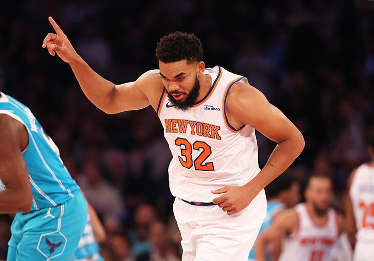 Таунс летом перешел в Никс к Тому Тибодо и его профиль поменялся очень заметно. Теперь КАТ, в плане розыгрышей, больше похож на центрового: в два раза выросла доля PNR RM, став его главным орудием. Также в два раза выросла доля подборов в нападении. Отдали свои проценты типы «получил-бросил», спот-ап и offscreen, которые чаще всего играются на трехочковой дуге. В прошлом году мы могли наблюдать пик-н-ролл КАТ-Гобер, где Таунс был за боллхэндлера. Теперь в Никс, когда Таунс сам играет роль Гобера (т.е. центра) их процент упал до нуля.