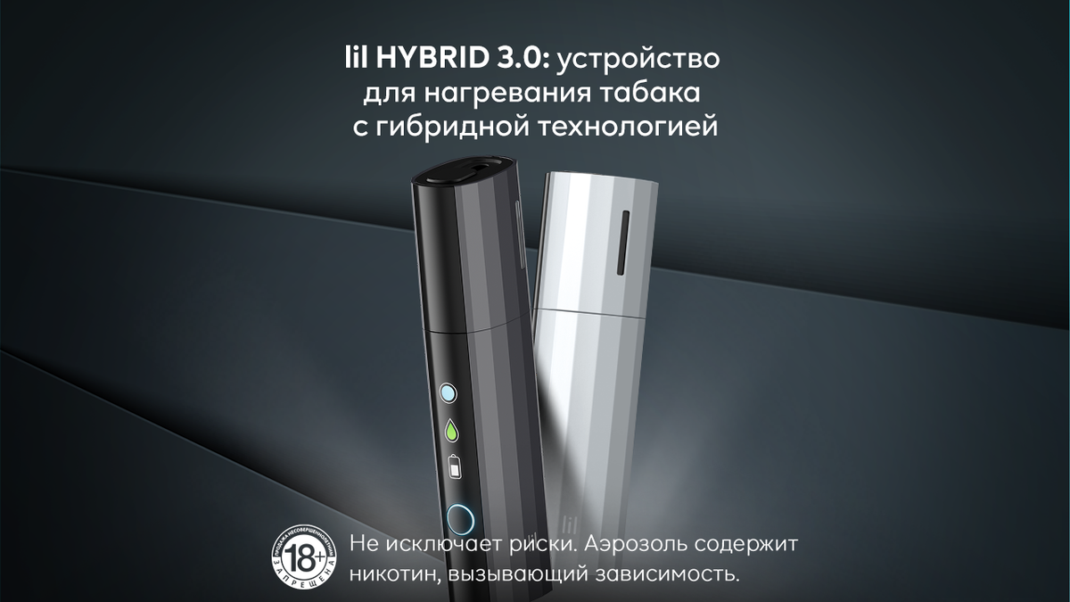 lil HYBRID — это гибридное устройство для нагревания табака. Рассказываем, что это означает, чем lil HYBRID отличается от других бездымных систем IQOS и lil SOLID и в чем его преимущество перед вейпами, одноразовыми сигаретами и кальяном. lil HYBRID, как и IQOS и lil SOLID, дает вам возможность почувствовать настоящий вкус табака без дыма и пепла. Однако это устройство имеет принципиальные отличия от своих предшественников в семействе IQOS: • Классик: 30 секунд предварительного нагрева — режим для более насыщенного вкуса. • Стандарт: 25 секунд предварительного нагрева — стандартный режим для насыщенного вкуса. • Кэжуал: 10 секунд предварительного нагрева — режим для большего объема пара по сравнению с другими режимам. Главное отличие устройства нагревания табака lil HYBRID 3.0 от IQOS lil SOLID — в наличии картриджа. Гибридная система нагревает табак в стиках, используя жидкость в картридже. Без картриджа или с пустым картриджем устройство работать не сможет. Основные преимущества lil