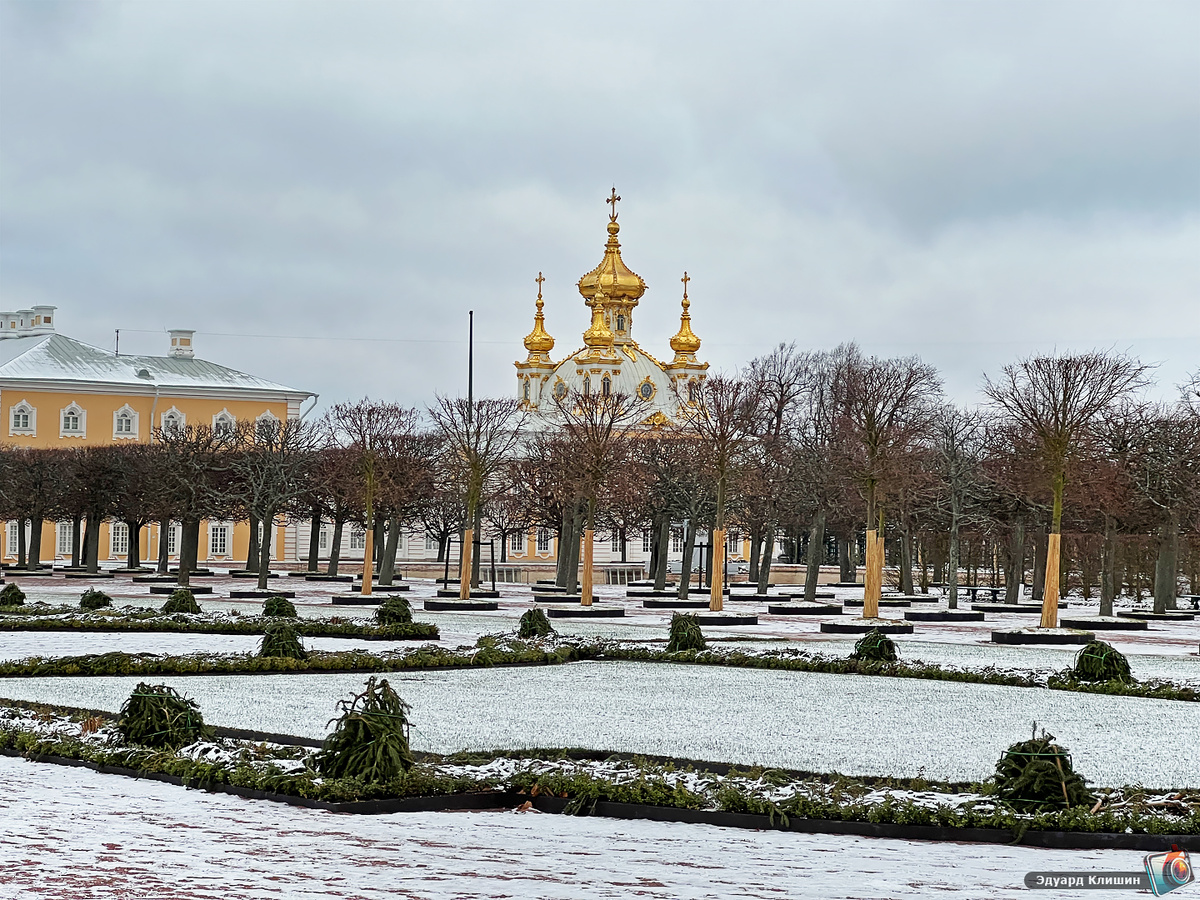 Верхний сад не очень большой, его спокойно можно обойти целиком за 30 минут – 1 час. Да, фонтаны, конечно, работать не будут, но даже сейчас вы можете увидеть в Верхнем саду и бронзовую фигуру Нептуна, бога морей с короной на голове и трезубцем в руке, прогуляться по здешним дорожкам и аллеям, сделать шикарные фотографии на фоне Большого петергофского дворца и не только.