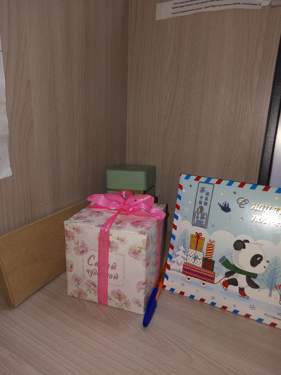 Утром проснулась, зашла в рабочий чат, а там куча поздравлений от коллег. Так сразу на душе стало приятно и тепло. На работе меня поздравили, подарили конвертик, 2 тыс и чай. Надя мне еще и от себя еще подарила подарочек. На фото он в розом бантике. Там мыло, маска, шоколадка. Долго ржали над чаем Красный петух. Я принесла торт и печенье. Это для нашей смены. Для другой смены еще сегодня принесла. Одна коллега мне подарила тортик. Торт был очень вкусный. Сливочно-пломбирный. Это коллега украсил свой стол. Весело было, одна коллега так смеялась, что сломала стул. Вот такое день рождения веселое получилось