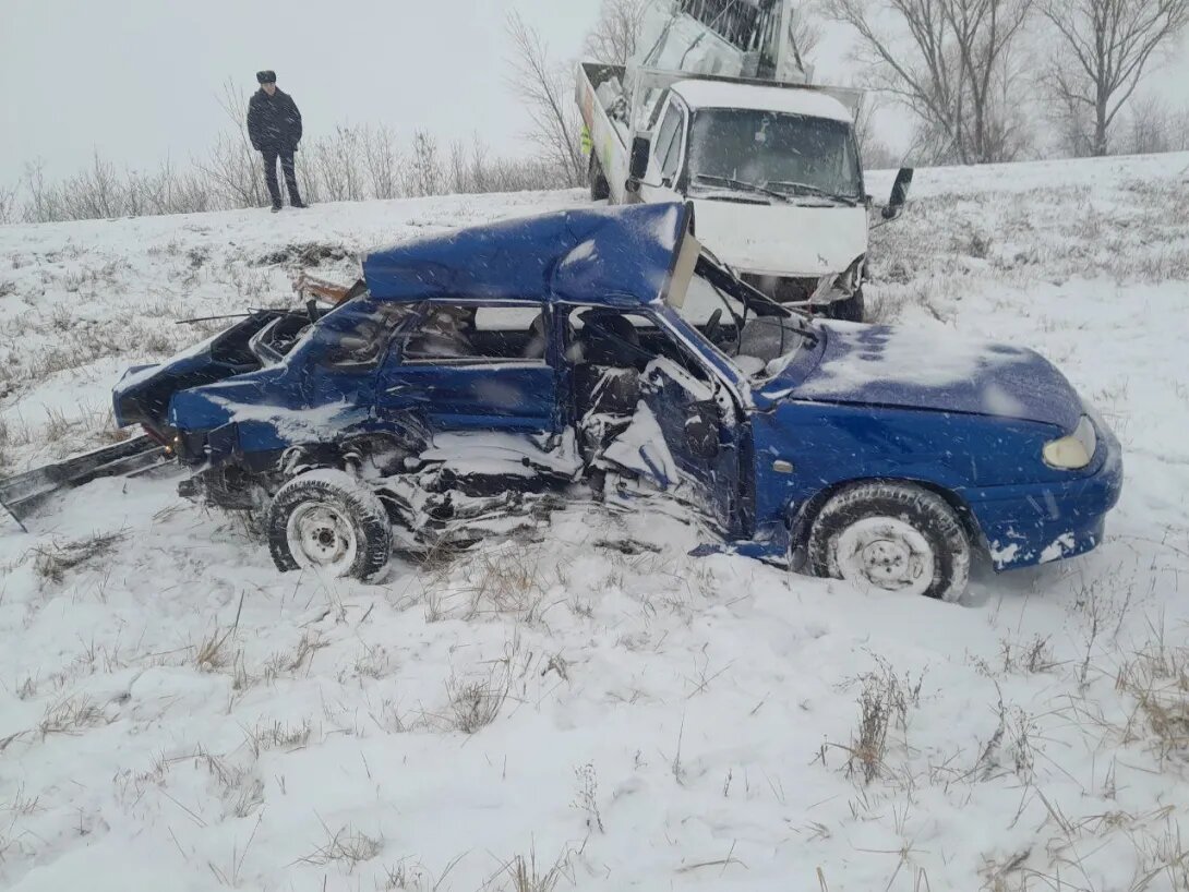 Легковушку расплющило после ДТП с «Газелью» на воронежской трассе