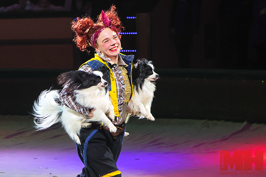 Белгосцирк подготовил праздничную программу «Новогодний Ералаш», премьера которой состоится 14 декабря. На генеральном прогоне побывала корреспондент агентства «Минск-Новости». По сюжету в преддверии Нового года Дед Мороз и Снегурочка отправляются с подарками к детям. А вот Баба Яга опаздывает и не успевает передать волшебнику свой мешок с разноцветными коробочками. Неумека и Снеговик хотят помочь ей и отправляются в путь, вот только постоянно сбиваются с дороги, да еще Неумека поддается соблазну и открывает коробки с необычными подарками… На манеже зрители увидят умных и шаловливых дрессированных собачек под руководством Натальи Майхровской, пони в образе единорога в номере Сергея Простецова. Также в программе номер эквилибристов под управлением Олега Лобанова. Артист идет по канату, держа в руках шест, а на голове у него стоит партнерша на пуантах! «Новогодний Ералаш» покажут в Белгосцирке 14 декабря Романтичный номер подготовили воздушная гимнастка Анна Синельникова и лихой наездник