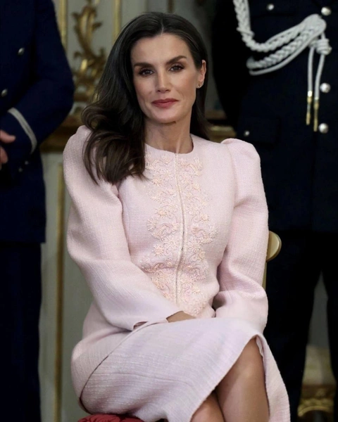 Для насыщенного уикенда Летиция подготовила сразу несколько сногсшибательных образов. В первый день королева примерила светлый брючный костюм с приталенным пальто, объемным шарфом, золотыми туфлями на каблуке и сумочкой в тон. Кстати, в этом аутфите Летиция появилась на публике не впервые. На церемонии вручения журналистской премии имени Франсиско Сереседо в 2023-м королева позировала в точно таком же костюме бренда Hugo Boss.