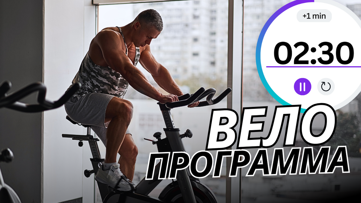 - 1 минута: Высокая интенсивность (сопротивление 6-8, 90-110 об/мин)