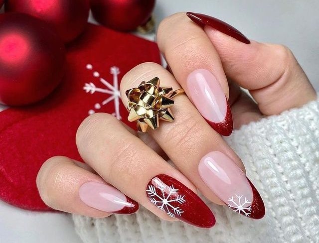 Золотой бархат или снежное омбре: 10 чудесных идей новогоднего френч-маникюра
