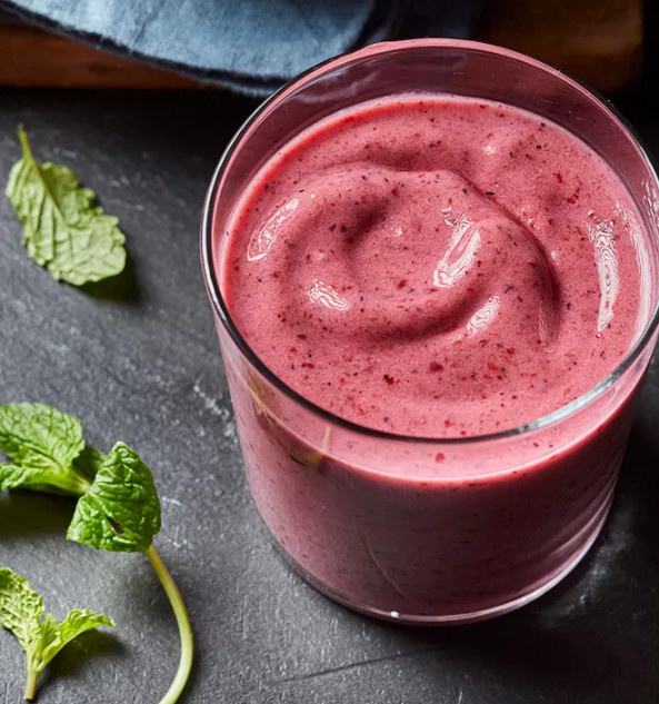 Смузи из кефира с ягодами и мятой (2 порции: 274 калории).