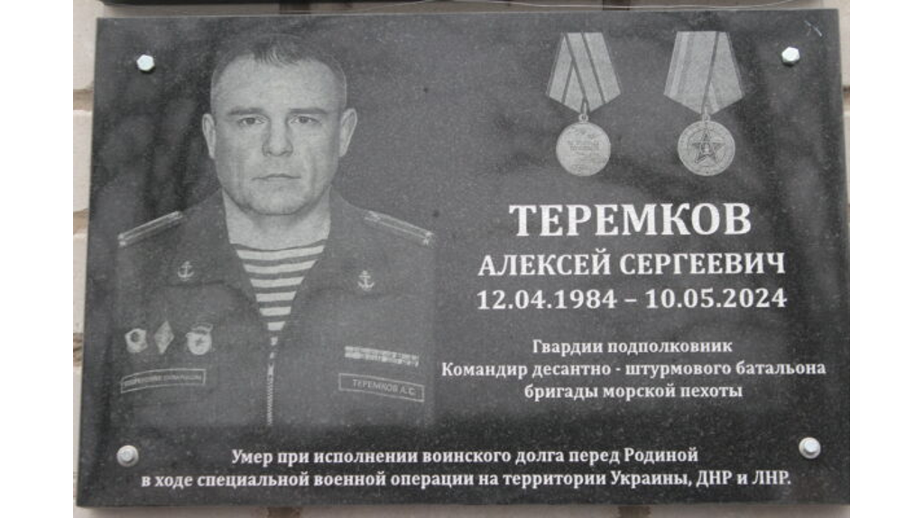В поселке Кокоревка Суземского района увековечили память погибшего в ходе специальной военной операции Алексея Теремкова. Мемориальную доску гвардии полковнику, командиру десантно-штурмового батальона бригады морской пехоты открыли на здании местной школы, которую он окончил в 2001 году.