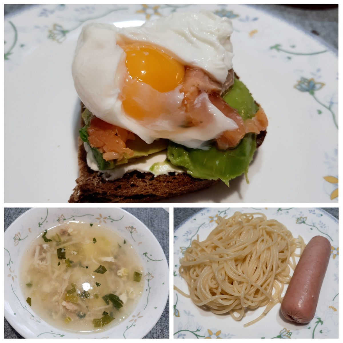 На завтрак бутерброд с творожным сыром, авокадо, соленым кижучем и яйцо-пашот сверху.