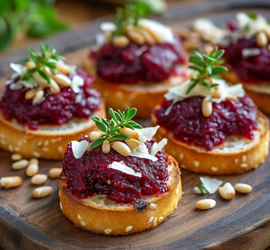 Канапе со свеклой, пармезаном и кедровыми орешками